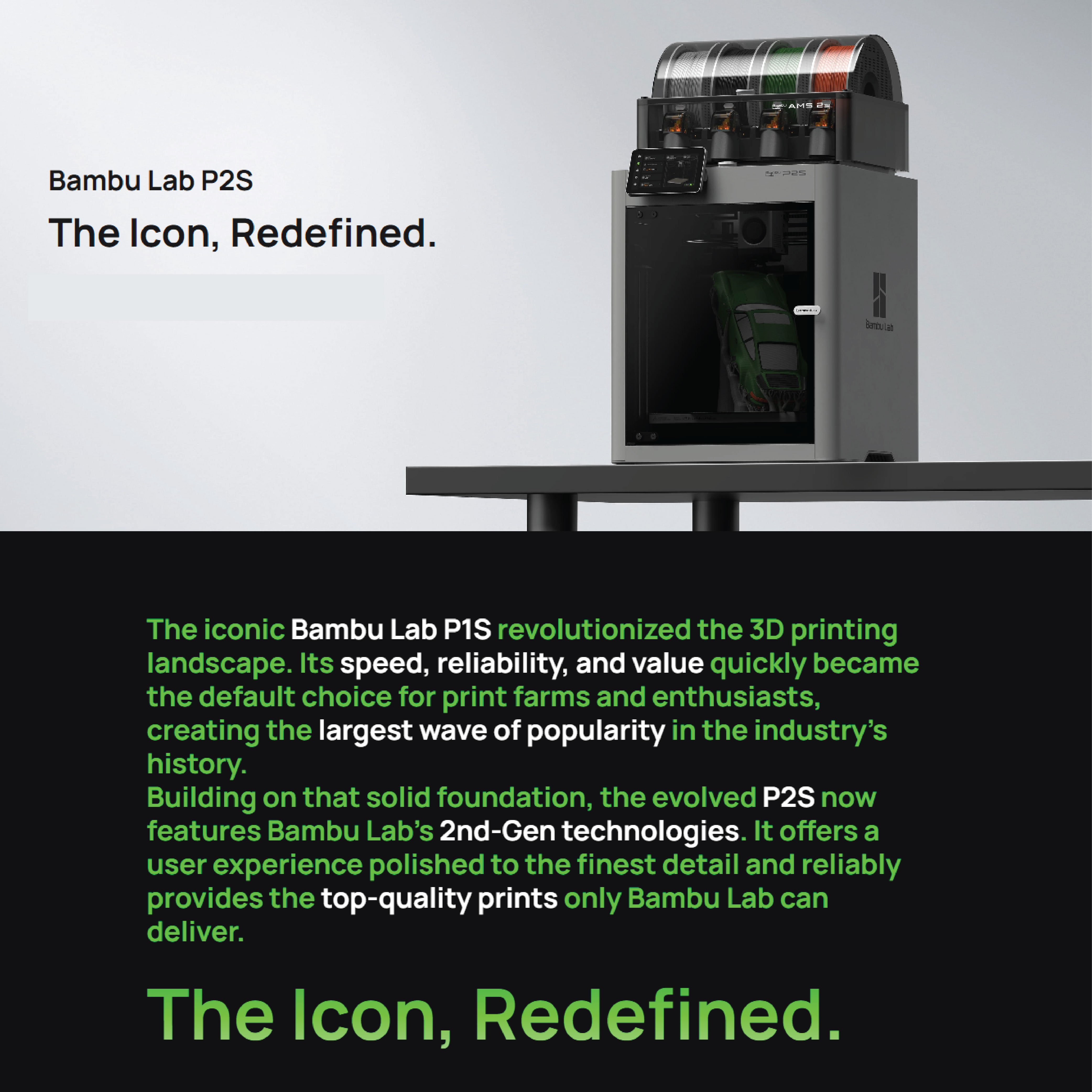 Bambu Lab P2S: The Icon, Redefined. Professional Speed, Smarter Printing, Now More Accessible.