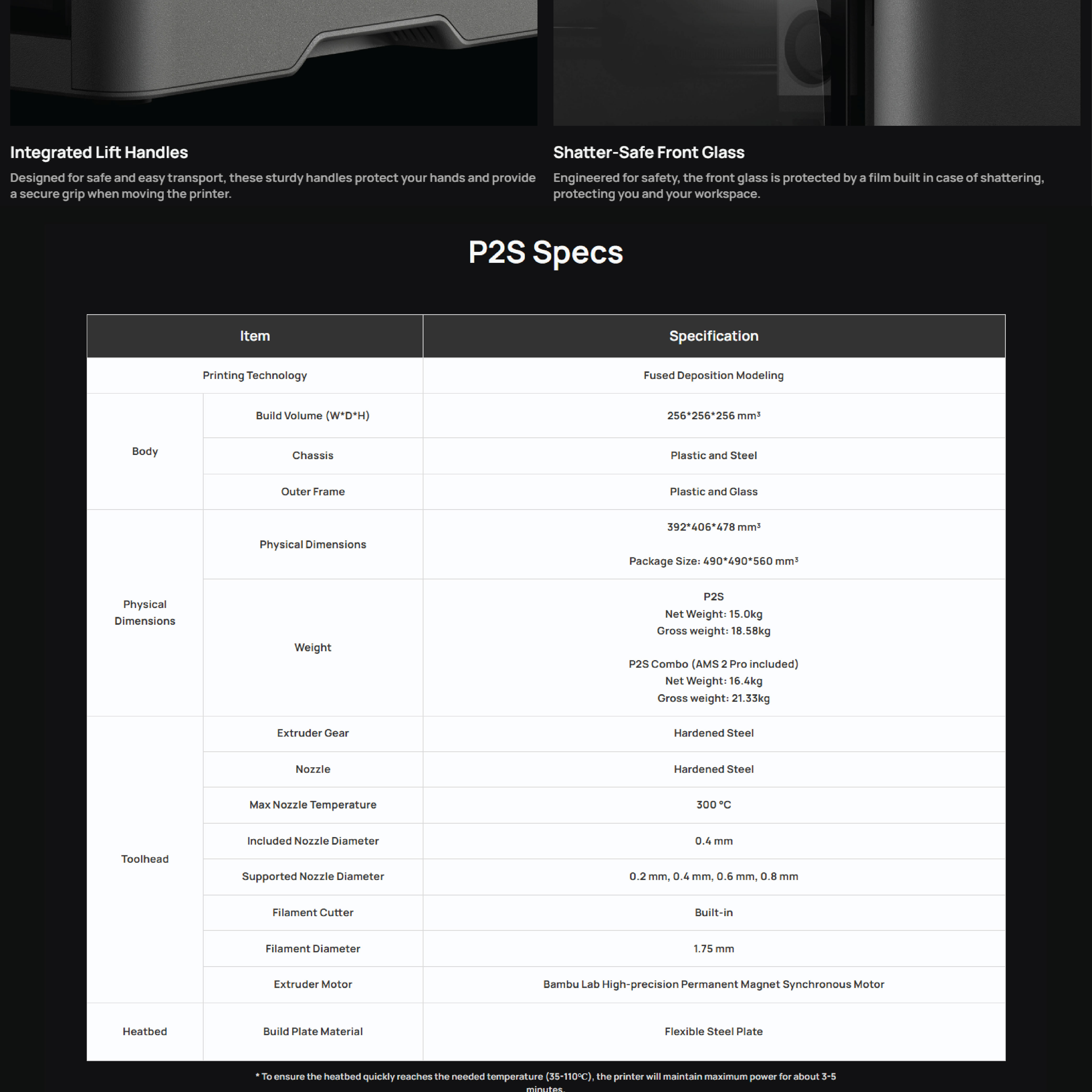 • Bambu Lab P2S High Speed FDM 3D Printer