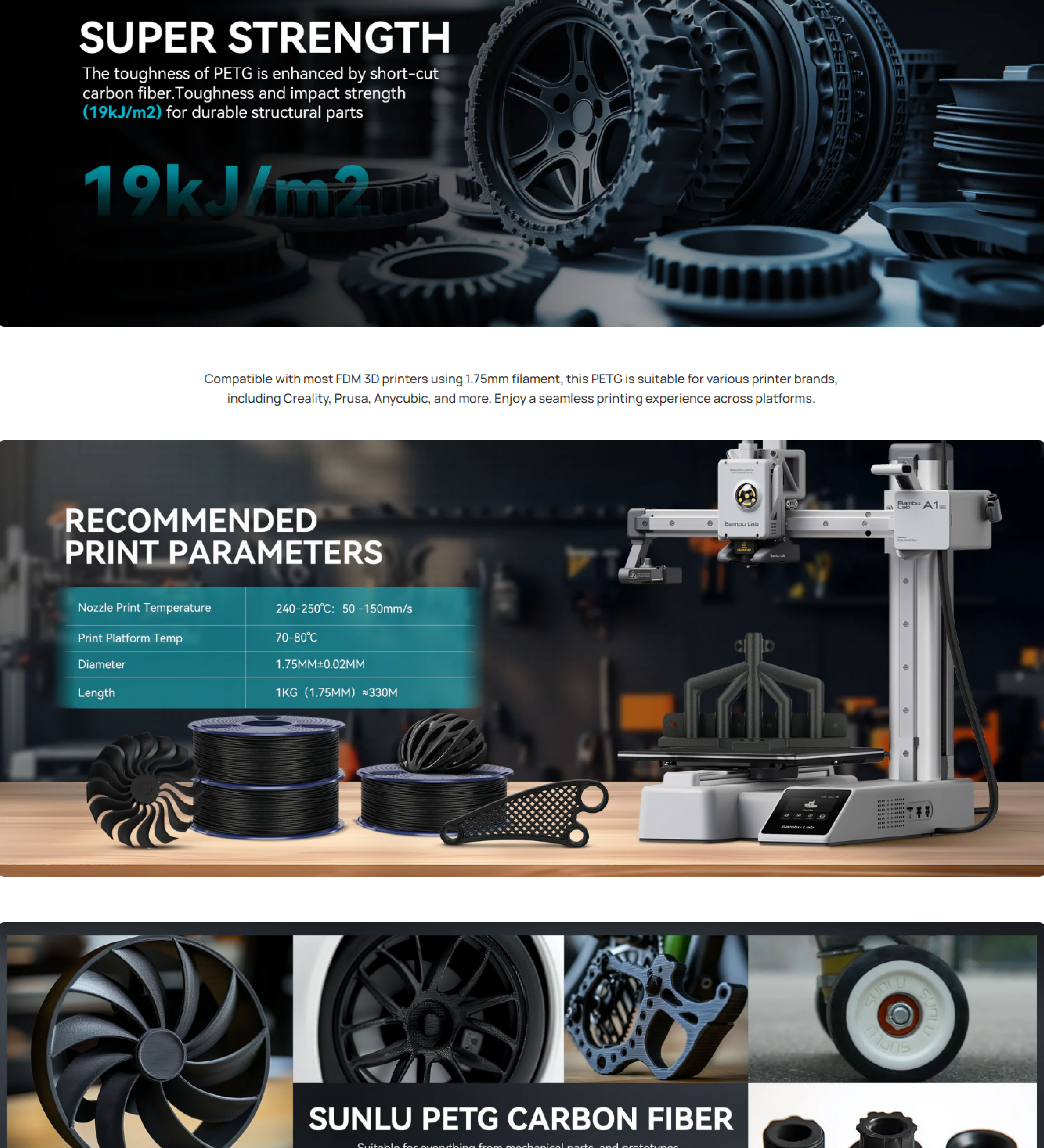 1 x Sunlu PETG-CF Filament 1.75mm 1KG